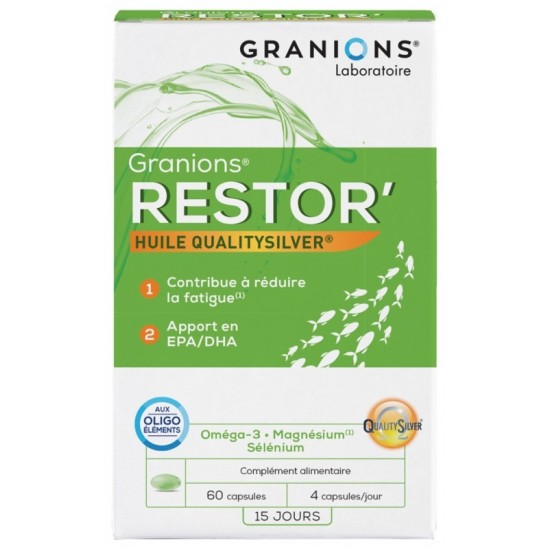 Les Oméga-3 contiennent des acides gras essentiels EPA et DHA. Le DHA est un acide gras majeur retrouvé dans la structure des tissus du cerveau et du système nerveux central. Il contribue au bon fonctionnement cérébral. L’effet bénéfique est obtenu par la consommation journalière de 250 mg de DHA. Nos Oméga-3 font l’objet du label Qualitysilver® permettant une meilleure stabilisation de l’huile dans le temps.